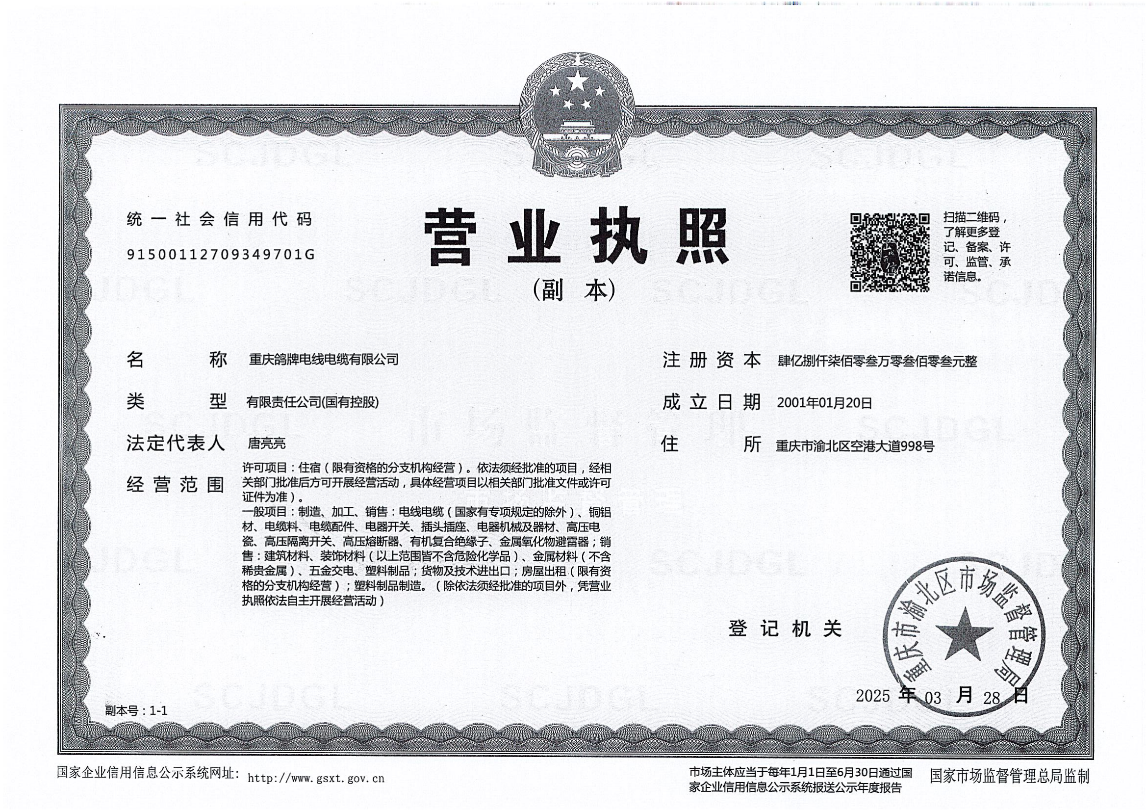 目前,公司鴿牌系列產(chǎn)品被評(píng)為“國(guó)家質(zhì)量AA信譽(yù)資質(zhì)”、“重慶名牌產(chǎn)品”;鴿牌公司被授予“全國(guó)五一勞動(dòng)獎(jiǎng)狀”、“國(guó)家高新技術(shù)企業(yè)”、“全國(guó)工業(yè)品牌培育示范企業(yè)”、“國(guó)家級(jí)綠色工廠”、“重慶老字號(hào)”等多項(xiàng)稱號(hào),蟬聯(lián)11屆“中國(guó)線纜產(chǎn)業(yè)最具競(jìng)爭(zhēng)力企業(yè)100強(qiáng)”,連續(xù)14年入選“重慶制造業(yè)企業(yè)100強(qiáng)”,連續(xù)17年入選“重慶企業(yè)100強(qiáng)”。